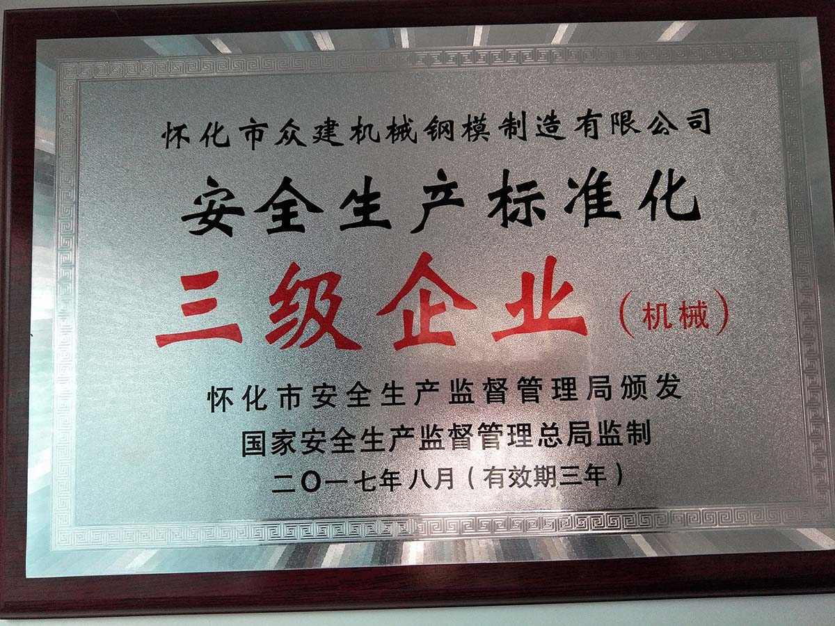 熱烈祝賀我公司榮獲“安全生產標準化三級企業(yè)”-湖南橋梁鋼模板